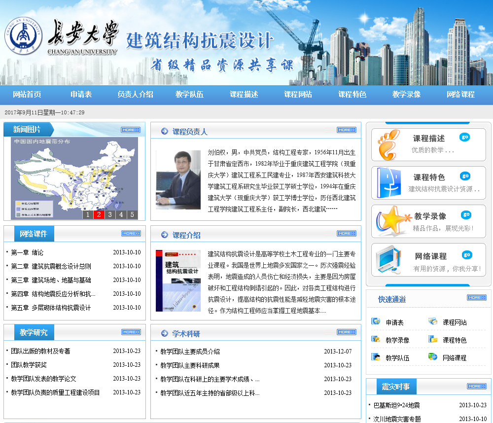 《建筑结构抗震设计》课程网站http://jgkz.chd.edu.cn/