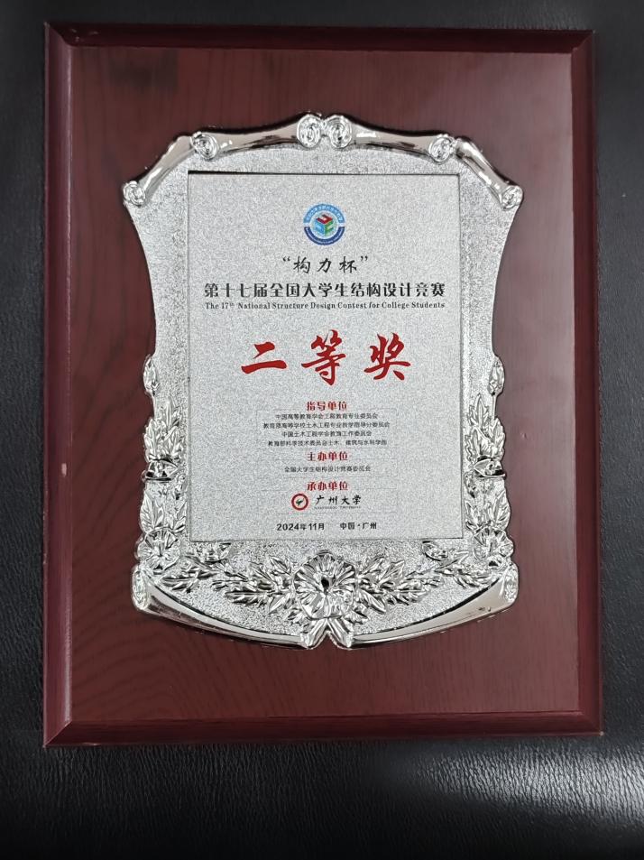 近日,第十七届全国大学生结构设计竞赛总决赛在广州大学举行,我校建筑工程学院学生苏数数、王豪阳、廖咏宁在教师王步、李悦指导下完成的参赛作品“筑梦塔”获总决赛二等奖。