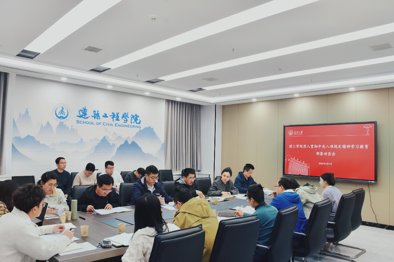 会上,吴涛系统领学了中央八项规定及其实施细则,深入解读了中共中央办公厅《关于在全党开展深入贯彻中央八项规定精神学习教育的通知》和《中共长安大学委员会关于开展深入贯彻中央八项规定精神学习教育的实施方案》的核心要义。他强调,中央八项规定精神是新时代全面从严治党的制度利器,是推进作风建设常态长效的重要指引。全院上下要以此次学习教育为契机,紧扣“聚焦主题、务实高效”原则,采取“学查改”一体化推进模式,将学习教育深度融入日常党建工作,切实以优良作风赋能学院高质量发展,特别是在土木工程专业转型升级的关键阶段,要凝聚共识、精准发力,全面提升学科建设水平。