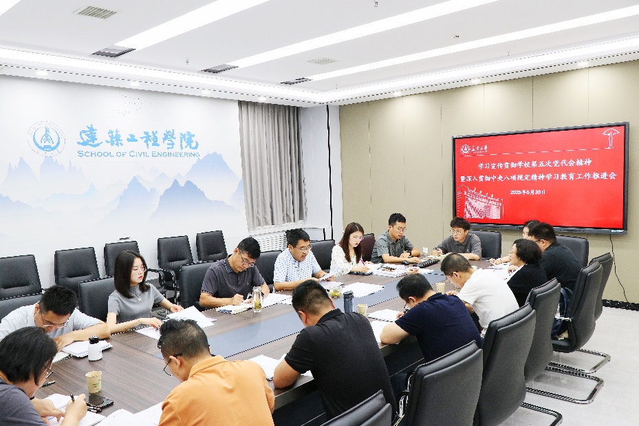 5月27日,建工学院在渭水校区致远大厦608会议室召开党委会,安排部署学校第五次党代会精神宣贯工作,领导班子成员参加会议。5月30日,召开学习宣传贯彻学校第五次党代会精神暨深入贯彻中央八项规定精神学习教育工作推进会。学院党委书记吴涛、党委副书记孟庆鹏、党委秘书王子诺、全体教工党支部书记及学生党支部书记代表参加会议。会议由学院党委书记吴涛主持。