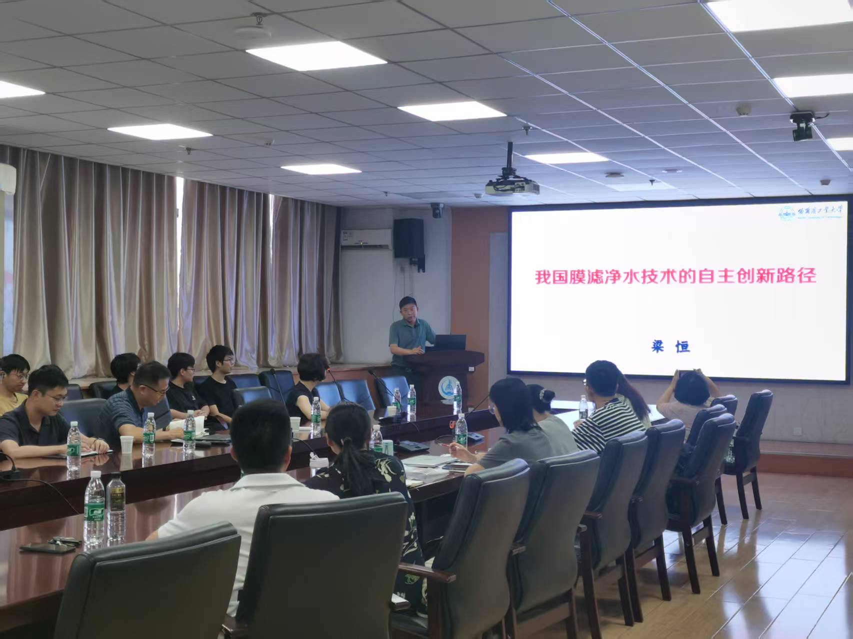 2025年7月25日,应市政工程系主任杨利伟教授邀请,哈尔滨工业大学环境学院院长、国家高层次人才、教育部给排水科学与工程专业教学指导分委员会秘书长梁恒教授莅临我校,为市政工程系师生带来了一场题为《我国膜滤净水技术的自主创新路径》的精彩学术讲座。本次讲座由学院副院长赵晓红教授主持,市政工程系教师及研究生参加了讲座。