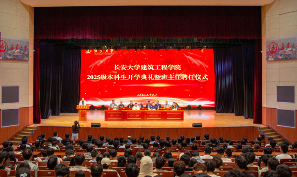 2025年9月18日,建筑工程学院2025级本科生开学典礼暨班主任聘任仪式在北校区长安文化艺术中心大礼堂举行。学院党委书记吴涛,院长邢国华,党委副书记、副院长孟庆鹏,党委副书记马熠航出席典礼,各系室负责人、科级干部、教师代表、全体辅导员,2025级全体本科新生参加开学典礼。典礼由马熠航主持。
