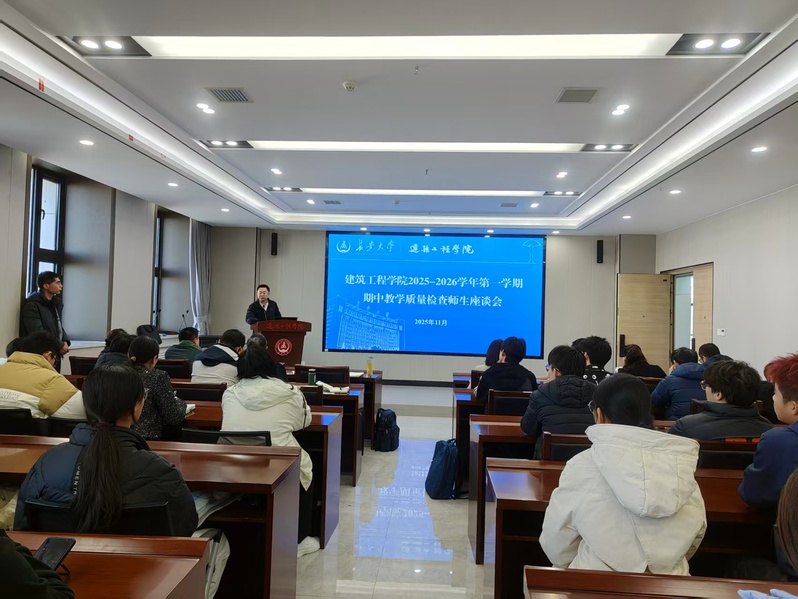 为全面了解教学运行情况,切实提高教学质量,11月18日中午,长安大学建筑工程学院在渭水校区致远大厦第一会议室召开2025-2026学年第一学期期中教学质量检查师生座谈会。学院主管本科教学副院长、本科教学督导、各系(副)主任、教学管理人员、辅导员以及各班代表参加会议。会议由专业建设与教学主管张连博主持。