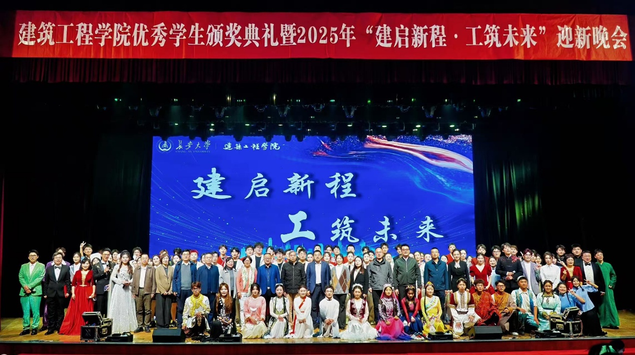 11月21日晚,建筑工程学院优秀学生颁奖典礼暨2025年“建启新程·工筑未来”迎新晚会在北校区长安文化艺术中心大礼堂举办。上海黄金枝教育发展基金会创始人黄金枝、巴州建工(集团)有限责任公司副总经理刘刚等在学院设立奖学金的嘉宾,学工部、研工部、校团委、教务处、社会合作处、后勤管理处、保卫处等学校职能部门领导及兄弟学院领导,建筑工程学院党政领导、各系室教师代表、全体新生及高年级学生代表1000余人共同参会。颁奖典礼由学院党委副书记马熠航主持。