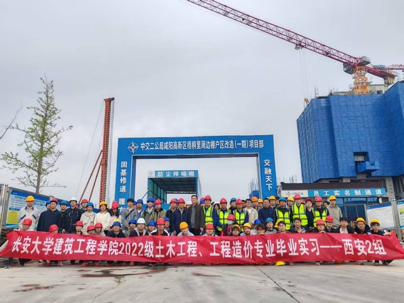 按照土木工程、工程造价专业毕业实习大纲要求,在学院7位指导教师的组织下,2022级土木工程、工程造价专业154名学生于2026年3月30日起在西安、咸阳等地进行了为期一周的毕业实习。实习内容为参观陕西永安减震科技有限公司、减隔震(振)与大跨空间结构省级重点实验室、西安北望建材有限公司、中交二公局咸阳高新区梧桐里周边棚户区改造工程和中国能建未来广场A区项目建安工程等。
