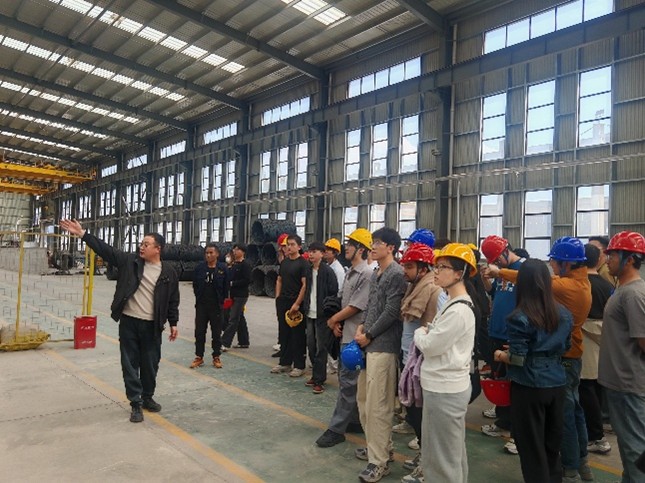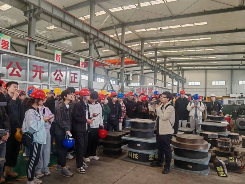 在永安减震科技公司展厅,企业技术人员为同学们详细讲解了软钢阻尼墙、隔震支座等减隔震产品的原理与应用。现场展示的“传统结构”与“隔震结构”对比模型,直观呈现了减震技术的显著效果。同学们还参观了装配式构件展示区,了解工业化建造与减震技术的融合创新。实习过程中,带队教师结合现场实物,从结构抗震设计角度剖析软钢阻尼墙的耗能机制,引导学生将课堂理论与工程实践相结合。此次实习使同学们近距离接触到建筑减震前沿技术,深刻认识到结构安全与防灾减灾的重要性,进一步激发了投身土木工程事业的使命感与责任感。