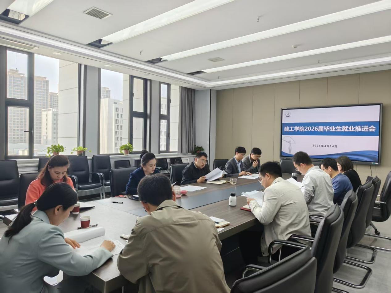 为进一步做好学院就业工作,推进2026届毕业生实现高质量充分就业,4月14日下午,建工学院在致远大厦E608召开2026届毕业生就业推进会。学院党委书记吴涛、党委副书记马熠航、各系主任(副主任或支部书记)及毕业年级辅导员参加会议。