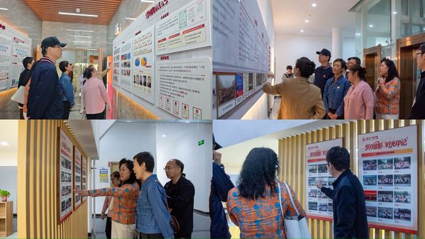 校友们走进致远大厦,驻足观看大厅内的学院发展历程及办学成果。泛黄的老照片承载着往昔求学记忆,让校友们重回当年课堂学习、课间交流的青春岁月。看着学院多年来的发展建设成果,校友们深感欣慰与自豪,从青涩求学少年到如今两鬓染霜,岁月变迁未曾改变大家对母校的深切牵挂与深厚的同窗情谊。